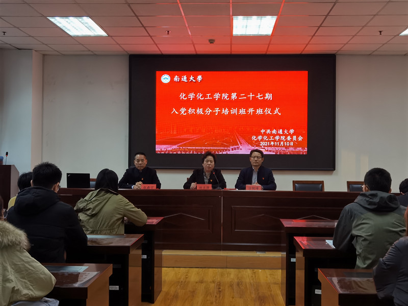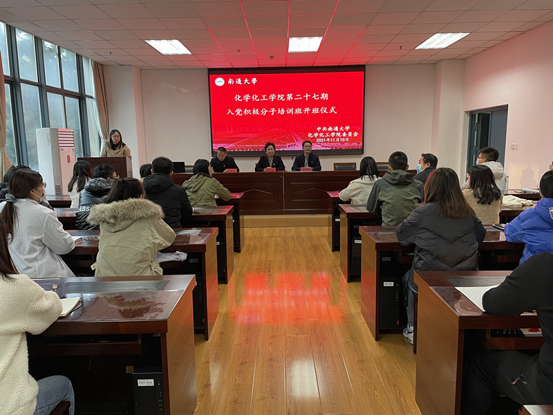 为深入学习贯彻习近平新时代中国特色社会主义思想和十九届六中全会精神,帮助入党积极分子认清新时代共产党员肩负的历史使命,11月10日下午,万象城awc官网登录入口分党校于纺化楼C110教室举办第二十七期入党积极分子培训开班开班仪式暨入党积极分子培训班第一讲。万象城awc官网登录入口党委书记胡兰萍、院长汤艳峰、副书记副院长张爵宁及学生支部书记等出席开幕式。院学工办主任陈玥竹本次会议。