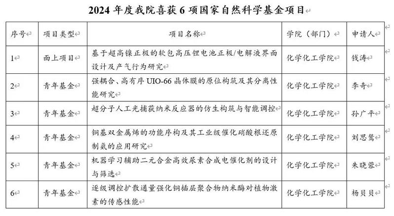 2024年度万象城官网喜获六项国家自然科学基金项目