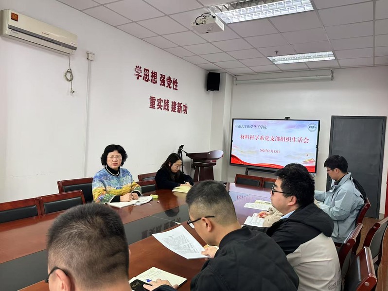 2025年3月13日,材料科学系党支部于纺化楼C502 开展组织生活会,学院党委书记李清湘出席并指导会议,朱晓蓉主持会议,支部全体党员积极参与。